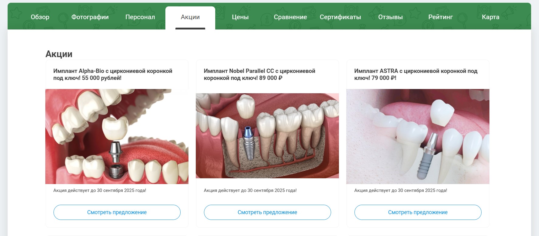 Все продвигаемые стоматологические клиники могут бесплатно размещать объявления на своих собственных страницах без ограничений.
